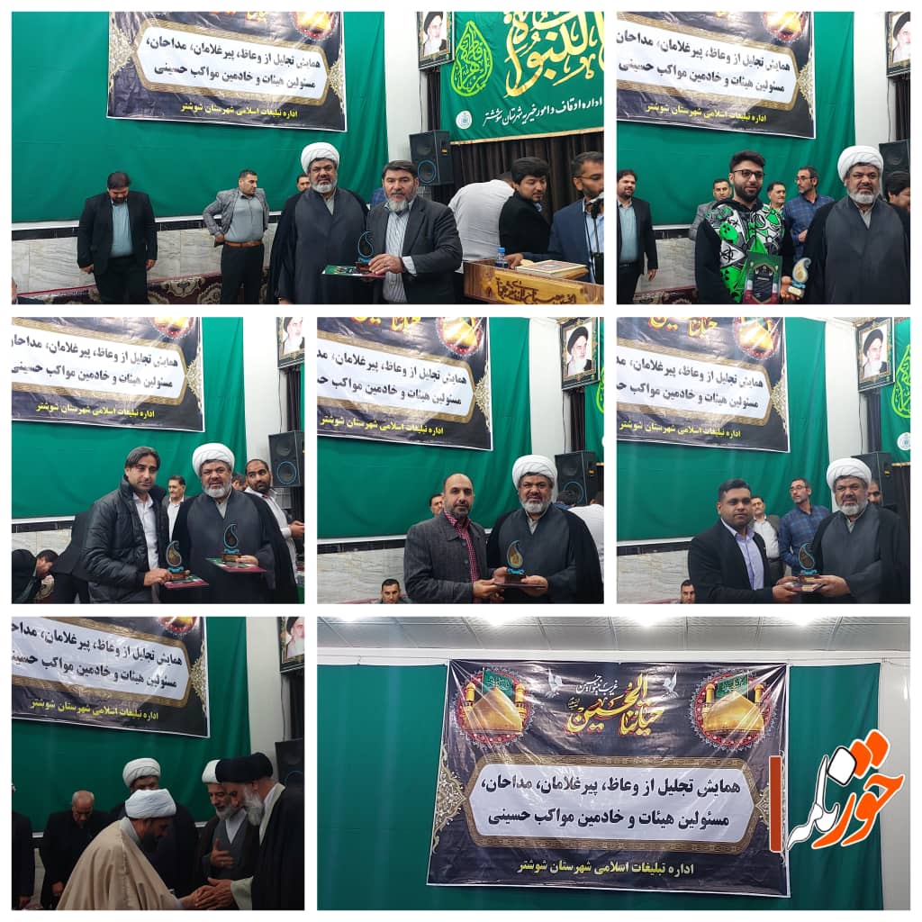 کهن شهر شوشتر میزبان صدها نفر ازمداحان ؛ مسئولان هیئات مذهبی وپیرغلامان حسینی بود، دراین مراسم از ۵ پیرغلام اهل بیت ؛ مداحان ؛ شعرای اهل بیت علیهم السلام و مسئولان هیئات مذهبی تقدیر شد.